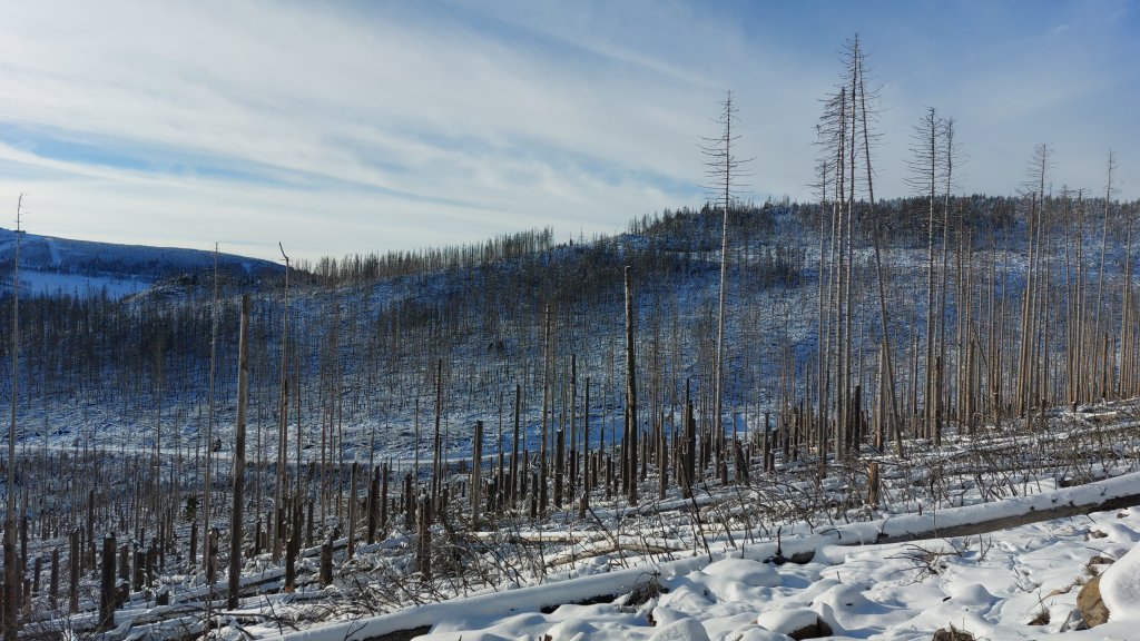 Een groot gedeelte van alle bomen was afgestorven of gekapt. Het kappen was waarschijnlijk een effect van het verwijderen van de dode bomen. Ik was erg benieuwd wat het nou maakte dat deze bomen zo massaal zijn gestorven. Na niet lang zoeken kwam ik al verhalen tegen over de schorskever in Duitse gebergtes waaronder het Harzgebergte.Schorskever zijn kevers die leven in en van naaldbomen. Via een gaatje kruipen ze naar binnen door de schors en het zachte weefsel. Er worden eitjes gelegd en vervolgens ontstaan er gangenstelsels door zowel de kever als de larven van de kevers. Echter heeft het ontstaan van deze gangenstelsels een negatief effect op de bomen. Van nature kan een boom met zijn boomhars zichzelf beschermen tegen de schorskever. Maar door de aanhoudende warmte in de zomers functioneert dit niet meer goed en kunnen de bomen zich zelf niet meer beschermen.