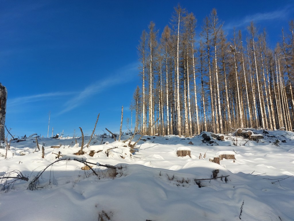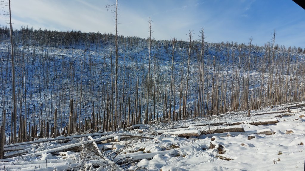 “Ik ga naar het Harzgebergte!” zei ik tegen een klasgenootje. Zij gaf aan dat het niet goed gesteld was met de bomen in de Harz en dat er een flink aantal dood aan het gaan was. Aangekomen in het Harzgebergte kon ik mijn ogen niet geloven. Wat een heftig gezicht. De kleur groen was vervangen door de kleur bruin, maar niet door het vallen van de bladeren van de loofbomen. Dit keer waren het naaldbomen die deze kleur zo uitspraken.