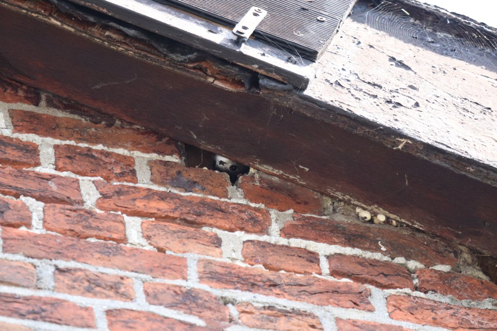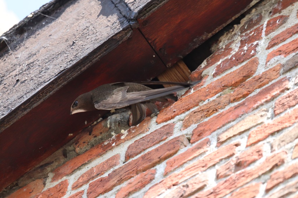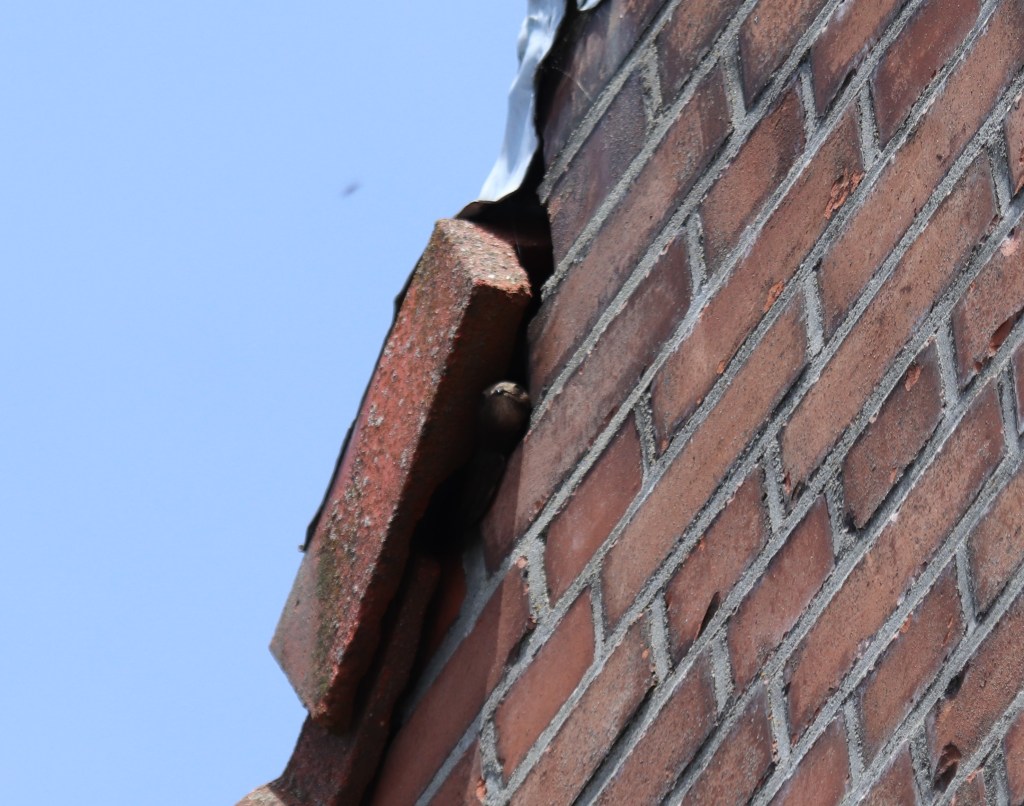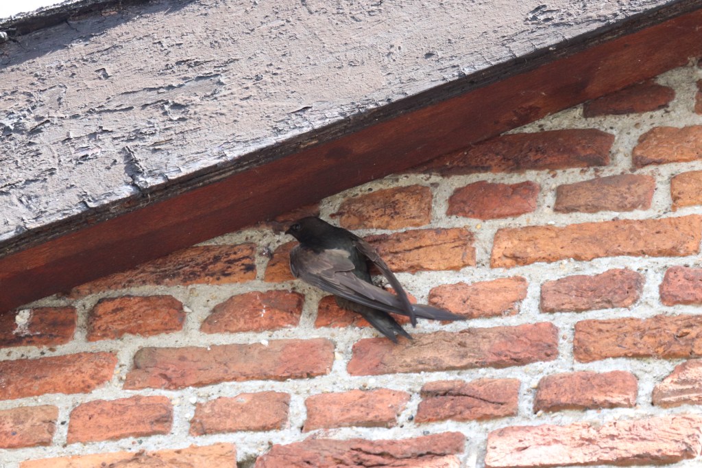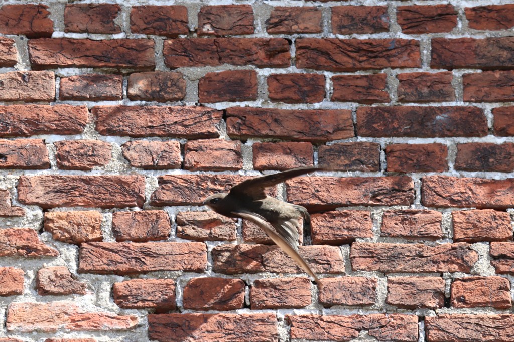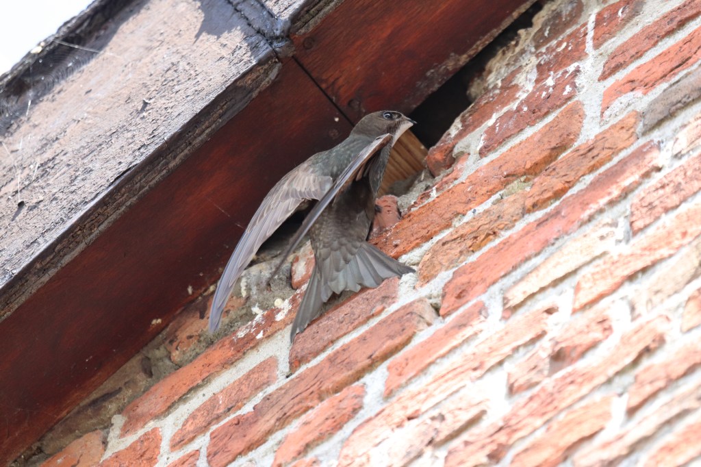 Gierzwaluwen behoren tot de snelste vogels van de wereld. Als ze hun nest invliegen kan dit wel met een snelheid gaan van 111 km per uur. En dit moet ook nog precies goed gemikt zijn op het nest, wat meestal slechts een klein gat of spleet is (zie foto 1 t/m 4 en overige). De reden hiervoor is dat ze korte poten hebben. Doordat ze zulke kleine poten hebben kunnen ze niet over de muren kruipen of lopen. Ze kunnen wel schuifelend hun nest in komen maar hierbij moet de afstand niet te ver zijn van het nest. Hierom zie je ze ook wel het nest aantikken als het nog net te ver is. Dan is de aanloop niet goed gegaan en vliegen ze weer verder. EÊn keer heb ik een gierzwaluw tegen de muur aan zien vliegen. Dit was geen fraai gezicht. Maar hij vloog gewoon weer verder. Ik heb het idee dat ze hierom ook wel tegen een stootje kunnen (gelukkig).