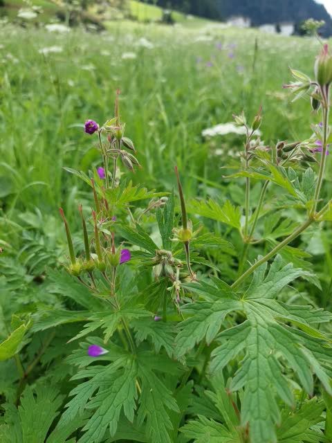 Sommige graslanden in Tirol kleuren paars. Dit kun je goed zien op foto 20 . De reden dat deze paars kleuren is door de Bosooievaarsbek (zie foto 32/33). Vooral de vruchten vallen op omdat die op een ooievaarsbek lijken. Hierdoor kan je wel direct zien dat het een soort is die bij de ooievaarsbekfamilie hoort.